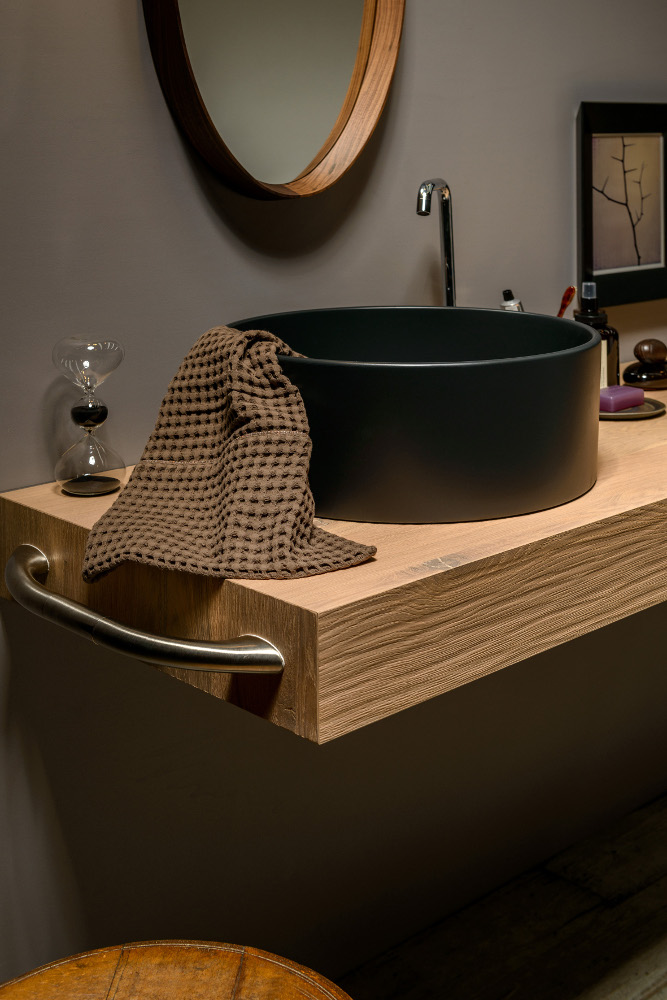 A tal proposito, è possibile personalizzare e arricchire il proprio lavabo con una serie di accessori, come mensole, portasalviette e appendioggetti, sia in legno di faggio naturale che in corda, in modo da rendere il tutto più armonico ed elegante.