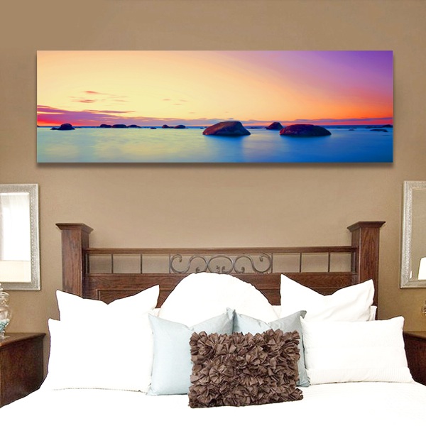 Ottimo accorgimento è partire dalla posizione delle finestre e dell’illuminazione e provare la collocazione della tela o del pannello con l’effetto della luce che entra dalla finestra nelle varie fasi del giorno. Inoltre occorre confrontarsi con ciò che è già presente nella camera in modo da valorizzarlo e bilanciarlo, senza creare contrasti e senza appesantire l’insieme.