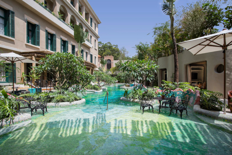 Il Rosewood São Paulo in Brasile integra il verde come parte strutturale del progetto, creando un continuum tra architettura e natura. Gli spazi esterni sono concepiti come giardini vivibili: piante rigogliose, alberi tropicali e percorsi d'acqua trasformano le aree comuni in scenari immersivi che favoriscono relax e socialità.