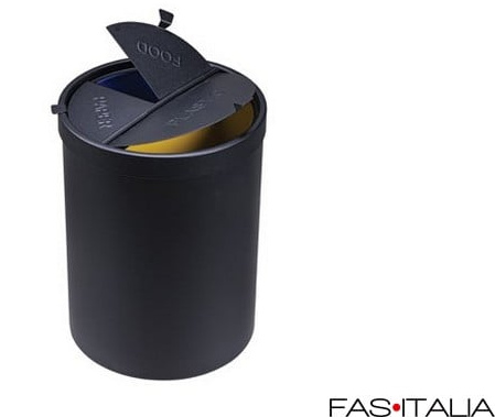 Tra le dotazioni per la camera, un'attenzione particolare è rivolta alla raccolta differenziata. I cestini con tre scomparti distinti permettono di separare carta, plastica e rifiuti indifferenziati in modo pratico, contribuendo concretamente agli obiettivi di sostenibilità della struttura.