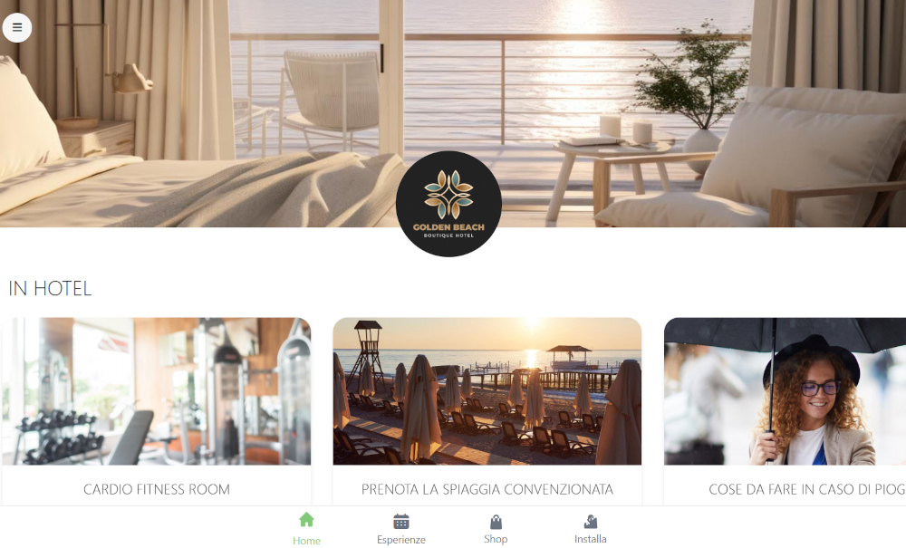 Servizi ed esperienze organizzati per sezioni: i contenuti sono facili da consultare, così che l'ospite possa orientarsi in autonomia e senza dover chiedere informazioni in reception.