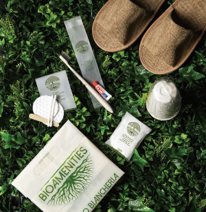 Soluzioni realizzate con materiali biodegradabili o riciclabili, adatte sia alle camere sia agli spazi comuni, per supportare le strutture ricettive che desiderano adottare pratiche più responsabili e comunicare il proprio impegno verso la sostenibilità.
