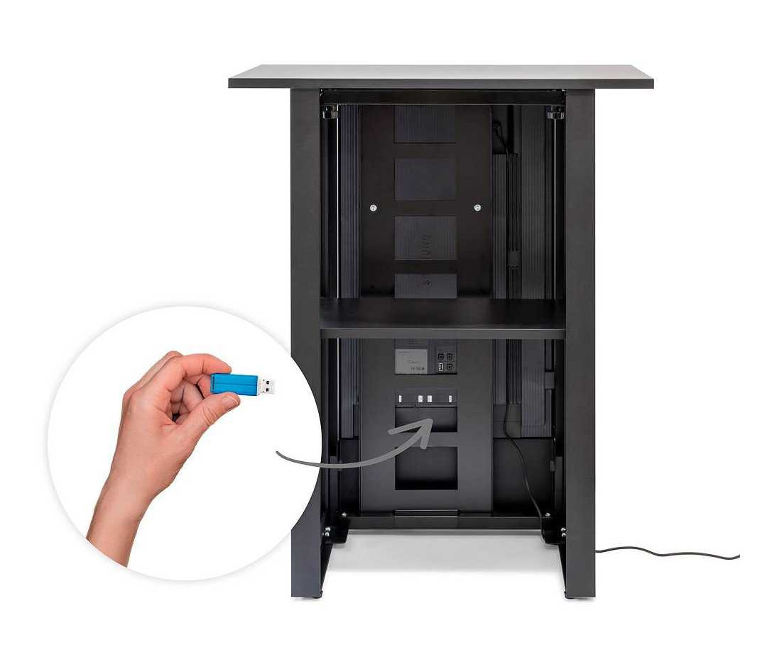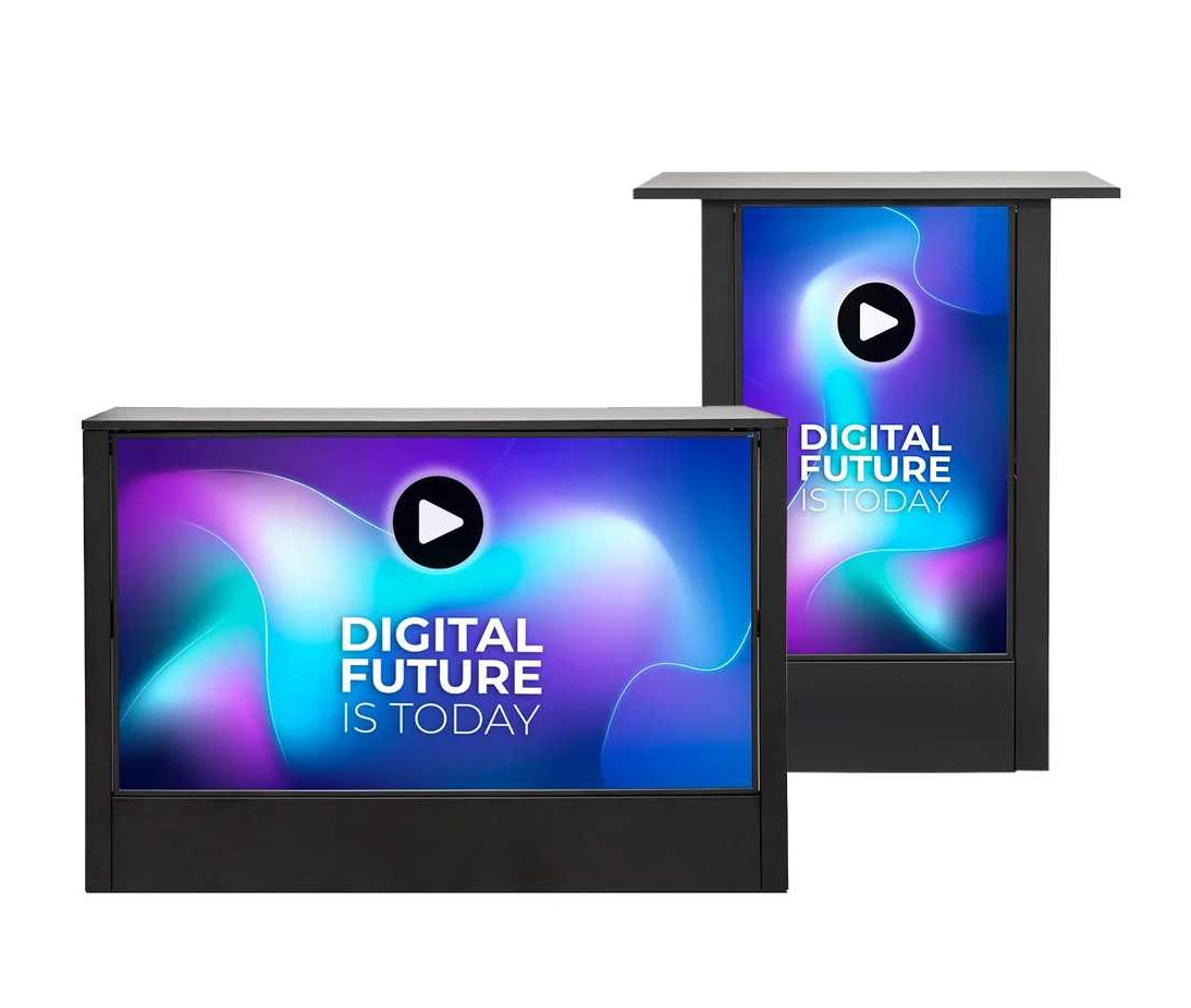 Anche in questo caso, prendiamo in esame i desk innovativi di Studio Stands, per illustrare le caratteristiche e le potenzialità di questi dispositivi dal forte impatto visivo. Lo schermo digitale può avere orientamento verticale (a partire da 32”) o orizzontale (a partire da 55"), garantendo una risoluzione che valorizza l'aspetto sia visivo che comunicativo dei messaggi e delle immagini riportate. La grafica dei desk può essere personalizzata, cambiandola ogni volta che si vuole in modo semplice e intuitivo. Inoltre, mediante Wi-Fi è possibile procedere anche da remoto.