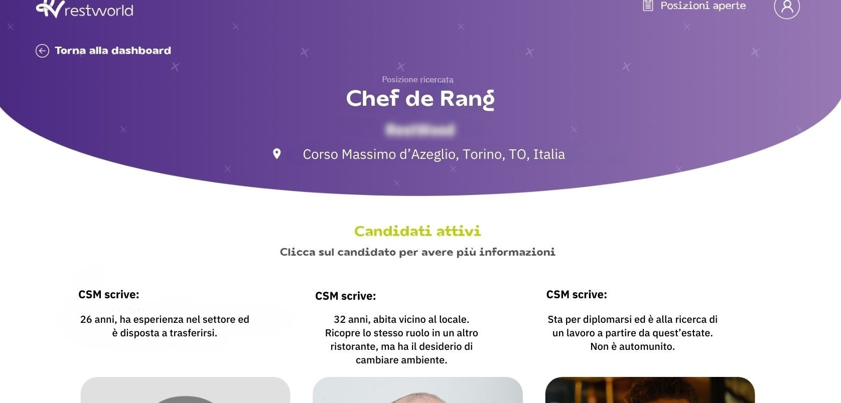 Dopo un colloquio conoscitivo utile a comprendere le specifiche esigenze dei gestori (la mansione, l'esperienza richiesta, gli orari e il tipo di contratto), Restworld si occupa di tutto il resto: filtra i profili disponibili e propone solo quelli realmente in linea con le richieste, riducendo notevolmente il tempo necessario per il reclutamento e permettendo ai gestori di concentrarsi su altre priorità. Un altro punto di forza è la capacità di selezionare candidati realmente motivati e in linea con la mission aziendale. Questo approccio limita la frequenza di turnover e facilita la costruzione di un team stabile.