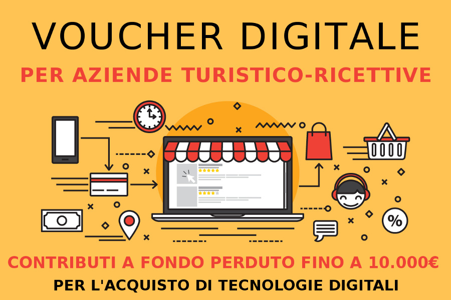 - Web Marketing Turistico: usa il voucher per spingere al massimo la tua struttura ricettiva e acquisire prenotazioni dirette. Grazie al voucher digitale puoi finanziare gli strumenti di web marketing più efficaci, la consulenza e la formazione necessaria.